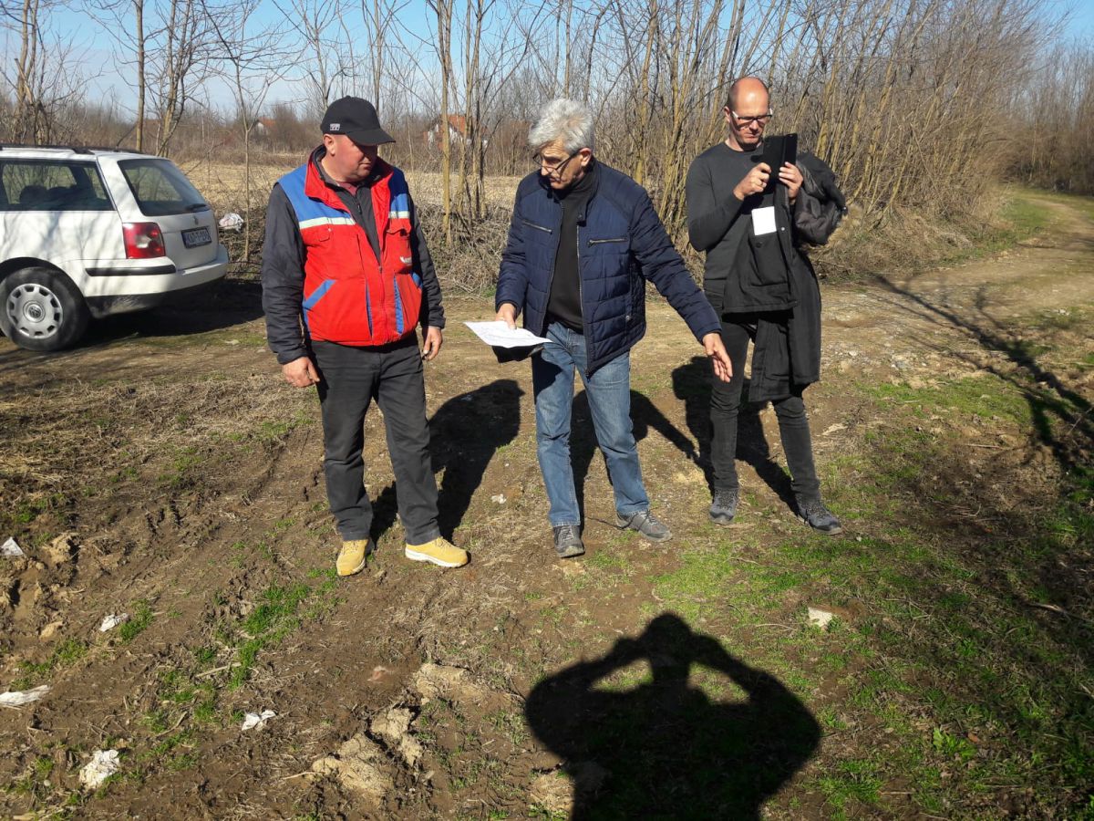 Ing.Mikulić (Udruga), geodet i ing.Klaić (Inter-Coop Martić d.o.o.) određuju trasu pristupnog puta na Majdanu